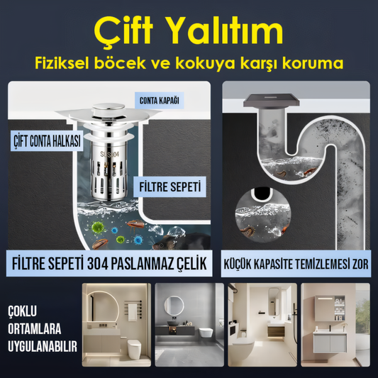 Dayanıklı, Sızdırmaz ve Koku Önleyici Pop-Up Gider Tapası (SUS304 + Pirinç)
